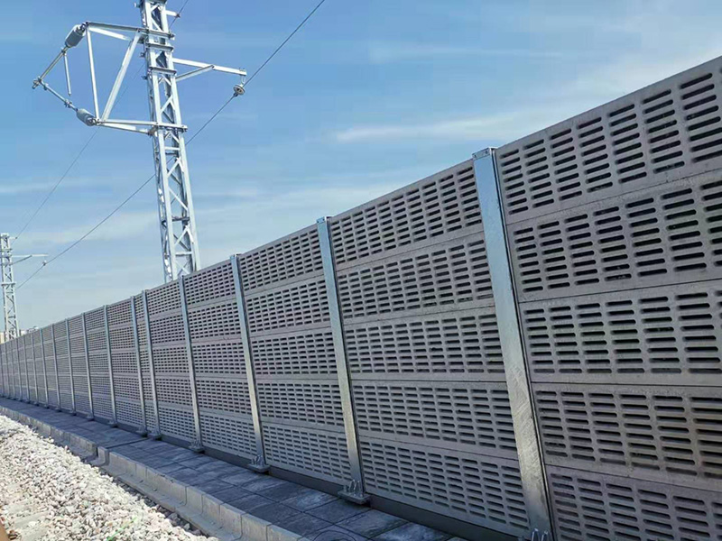 鐵路聲屏障,高度在1m一5m間,覆蓋有效區域平均降噪達10~15dB(A)(125Hz~40000Hz,1/3倍頻程),高達20dB(A)。一般來講,鐵路聲屏障越高,或離聲屏障越遠,降噪效果就越好。